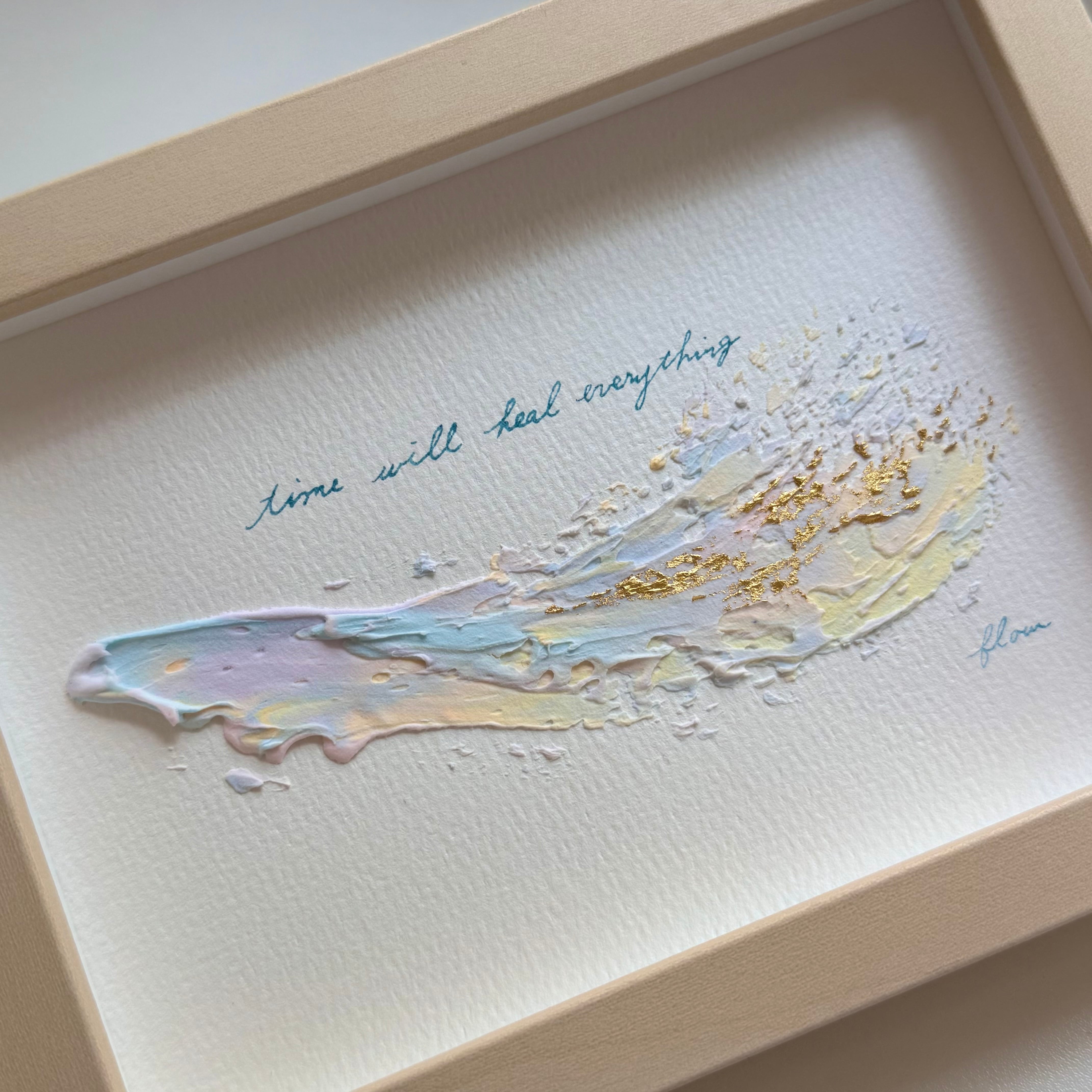 淡いピンクやブルー、オレンジやイエローの色彩が