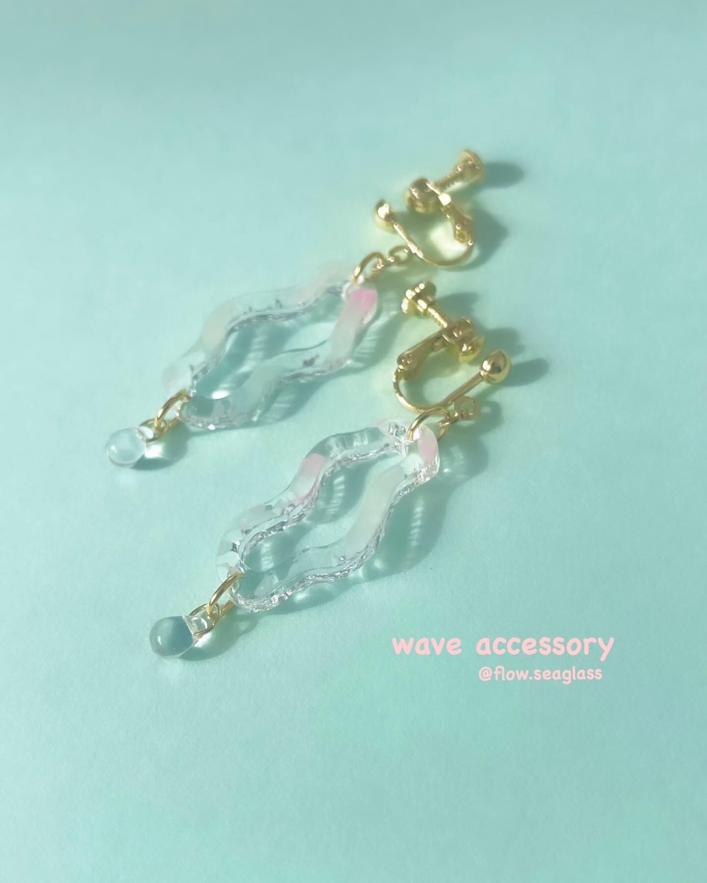 波のモチーフに波模様を描いた可愛らしいピアス、wave paint(クリア)。サンセットパステルカラーでシンプルながらも個性的なデザインなので、普段の装いにちょっとしたアクセントをプラスすることができます。