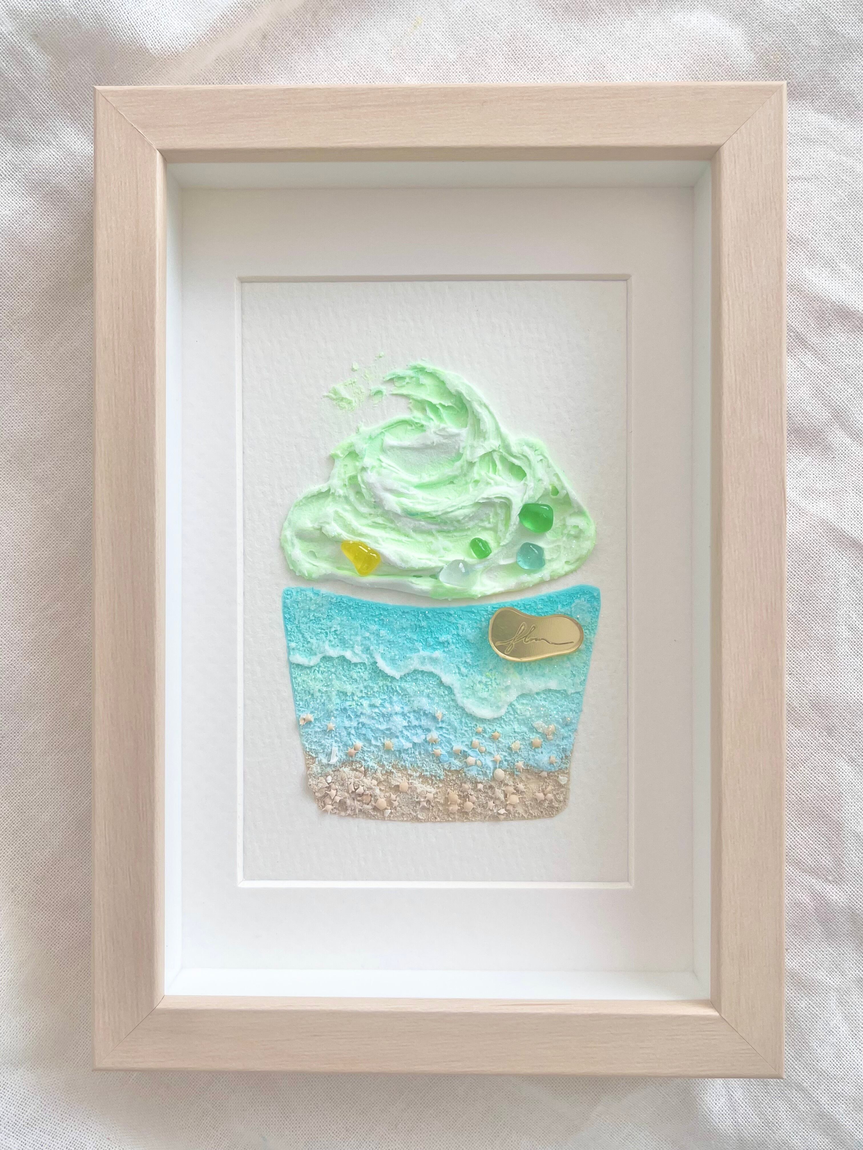 星砂とシーグラスを使い、まるで夏の海が溶け込んだ一杯のアイスドリンクです。