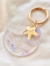 可愛い月の形をしたデザインで、キーリングとしてだけでなく、バッグやポーチのアクセントとしてもお使いいただけます。パステルカラーペイントが施された可愛らしい色味もポイントです。