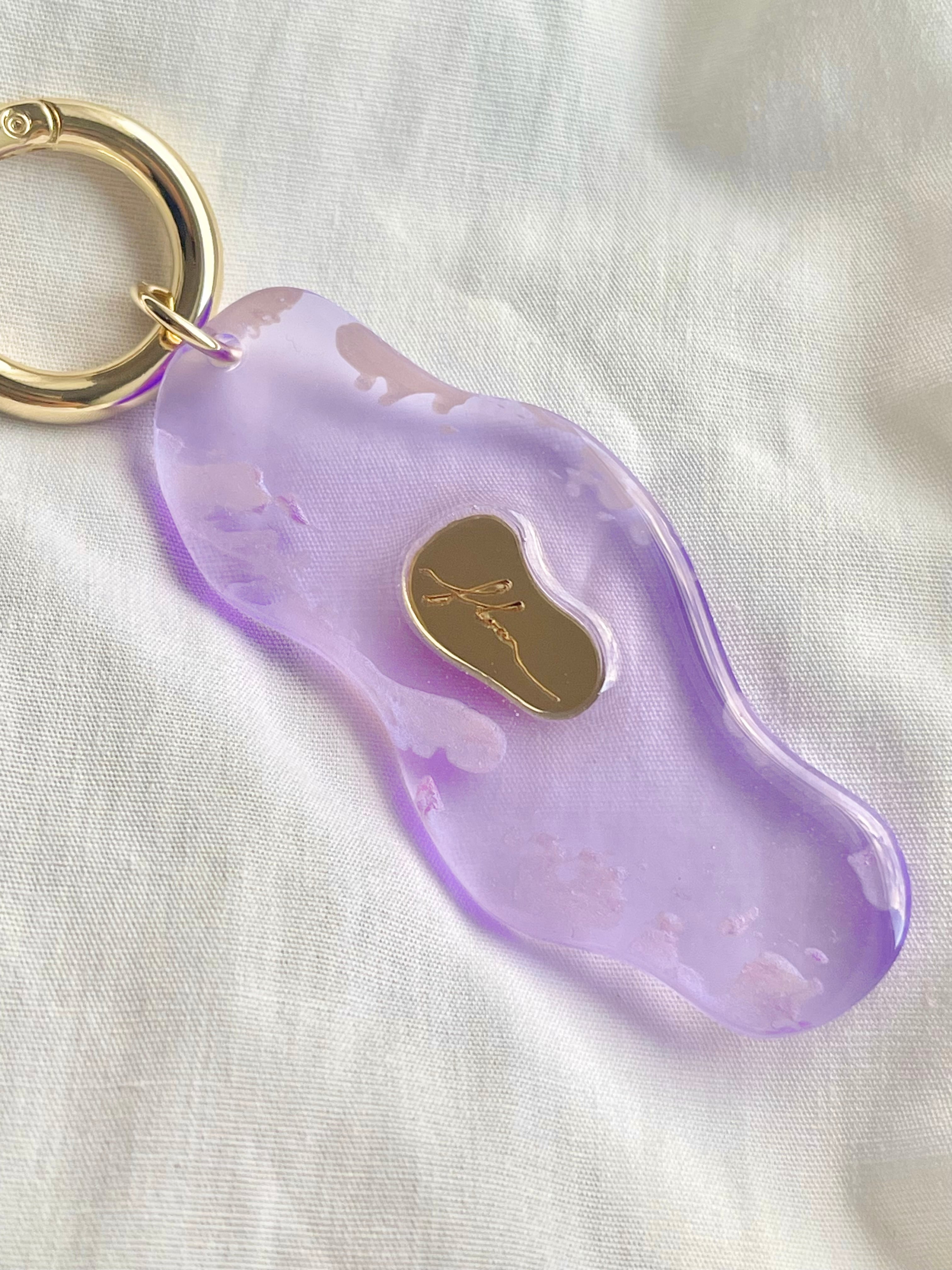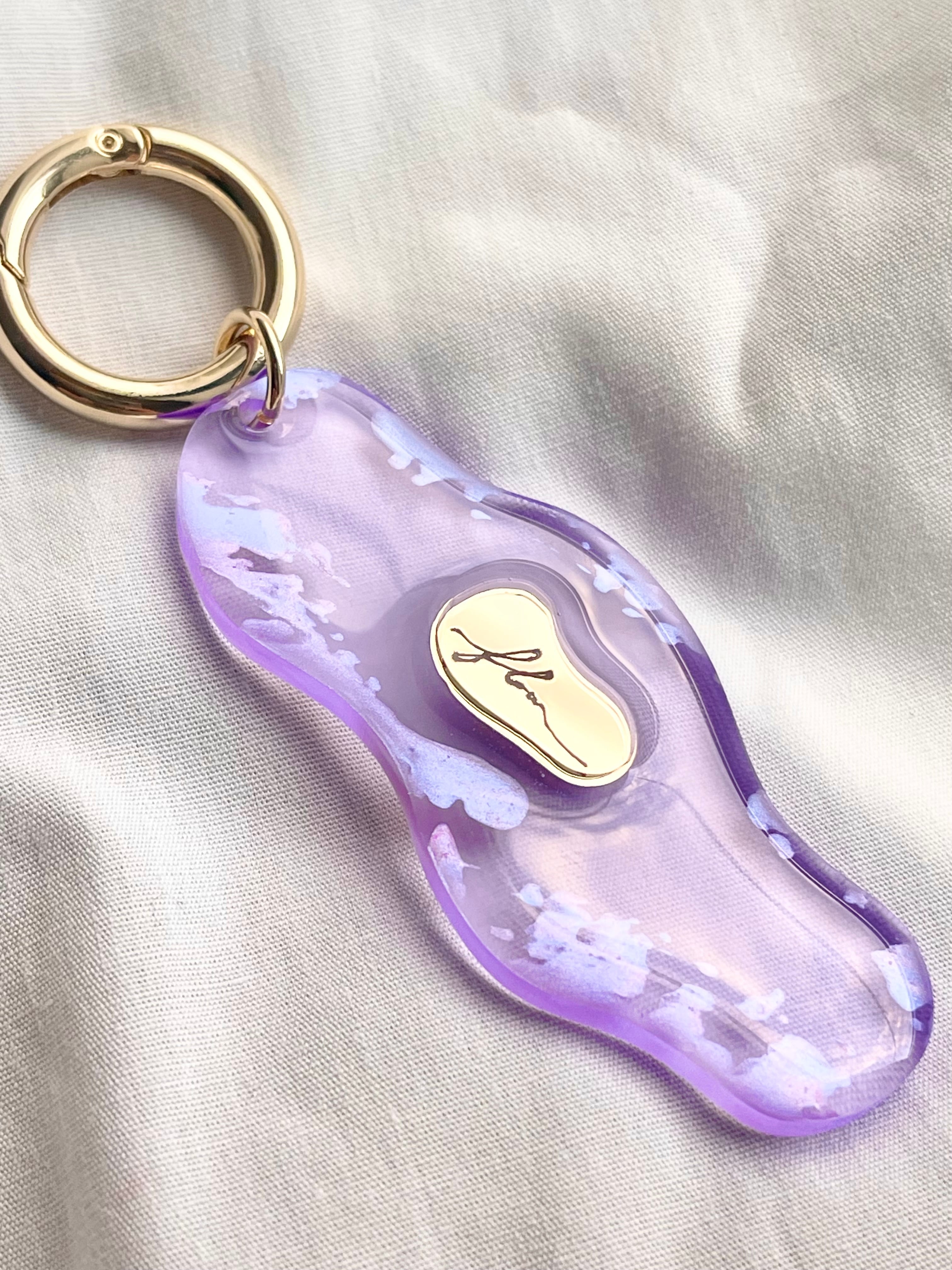 偏光色の美しい波模様が特徴のキーリングです。シンプルなデザインながらも、キラキラと輝く波の模様が存在感を演出します。一つ一つ手書きのペイントで海の色彩や波の動きをイメージしてます。