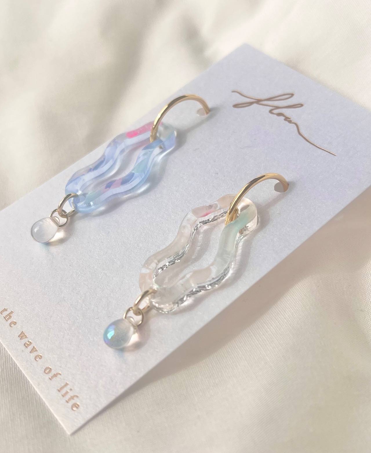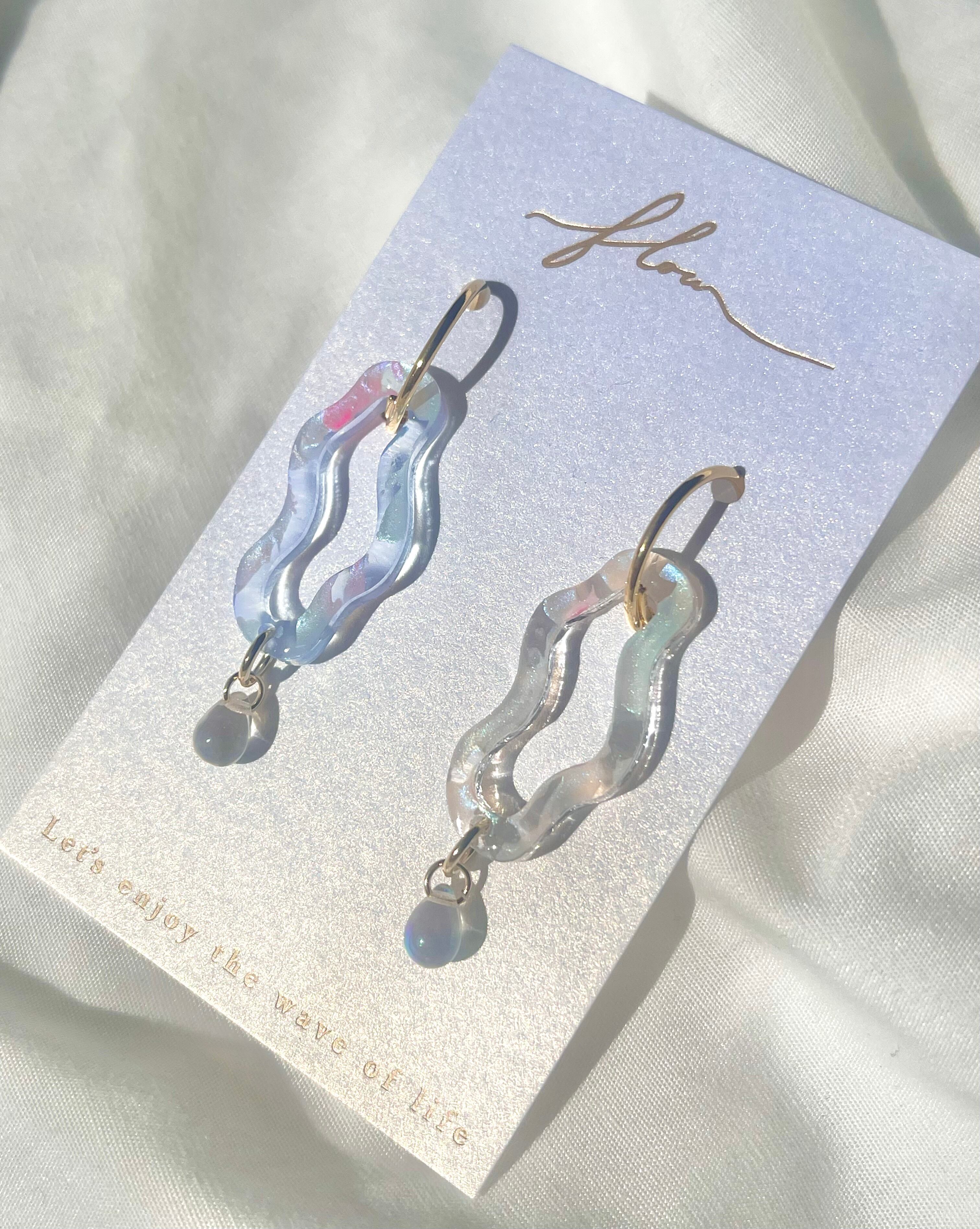 波のモチーフに波模様を描いた可愛らしいピアス、
